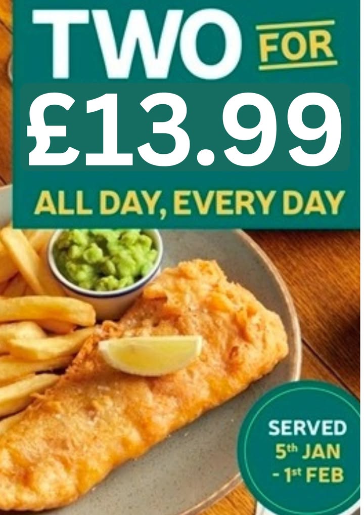 This is the last week of our fantiastic January offer two main meals, all day, every day. The offer runs up to 1st Febuary from our selected dishes its so good its almost buy one get one free!!!!